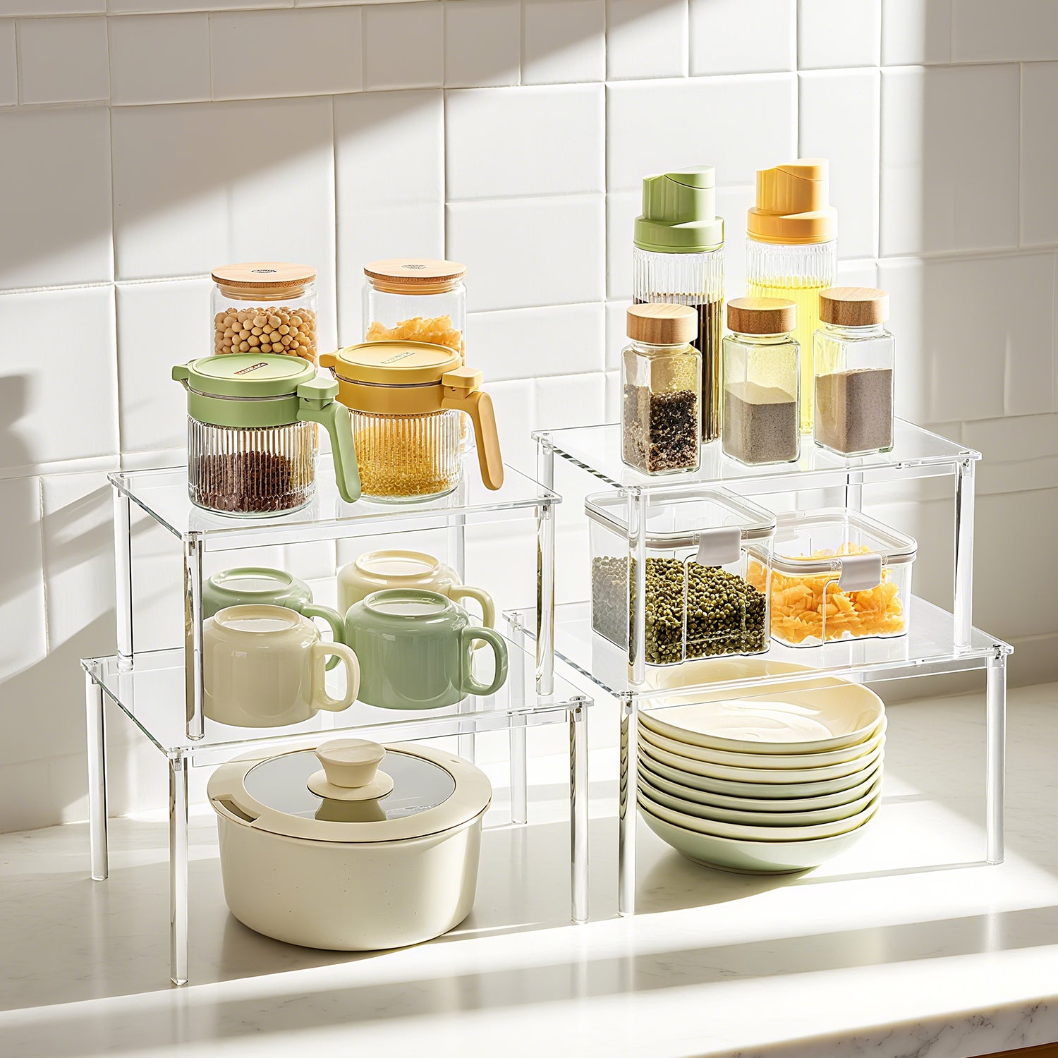 Clear Cabinet Organizer, Shelf Organizer Set of 2 for Kitchen Organizers and Storage, Display Pantry Cabinet Shelf Room Decor Countertop Desk Organizer Shelves, Patented Spice Organization for Cabinet